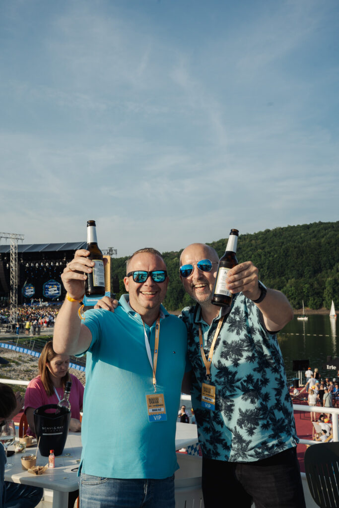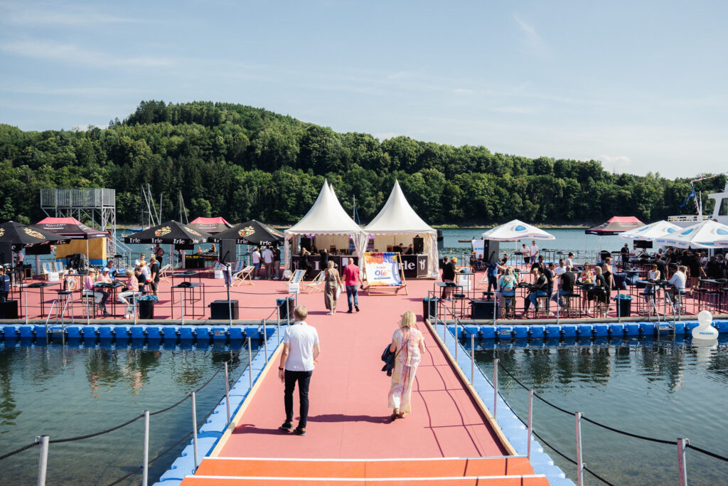 Der VIP Bereich befindet sich auf einem schwimmenden Ponton direkt auf dem Biggesee. Von dort aus hast du unverbaute Sicht auf die Bühne.
